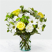 It’s amazing the effect flowers can have on its recipient. Through a collection of yellow roses and luminous bupleurum all set within a recycled cylindrical glass vase, our Happy Day bouquet is sure to bring a smile to the face of whoever it’s given to. Add the combination of white daisy pompon and green button pompon, and you’ll be making their day brighter with each sunny petal. GOOD bouquet is approx. 14″H x 14″W. BETTER bouquet is approx. 15″H x 15″W. BEST bouquet is approx. 16″H x 16″W.
