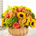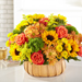 "Rustic, natural beauty and vibrant shades are used to create our Harvest Sunflower™ Basket. A mix of bold sunflowers, roses and dianthus complement your most heartfelt messages of comfort during times of sensitivity.