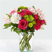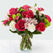 The true beauty of this bouquet is within the sweet colors of the flowers. An array of hot pink roses, pale pink alstroemeria and more are set in a glass cylinder vase, making a wonderful gift to light up the face of its recipient. GOOD bouquet 14″H x 14″W. BETTER bouquet is approx. 15″H x 15″W. BEST bouquet is approx. 16″H x 16″W.