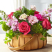 "With our Radiant Remembrance™ Basket, hope and comfort is captured within each bloom. A gorgeous selection of roses, stock, lisianthus and carnations come together in a reusable basket to add a touch of brightness to every celebration of life.